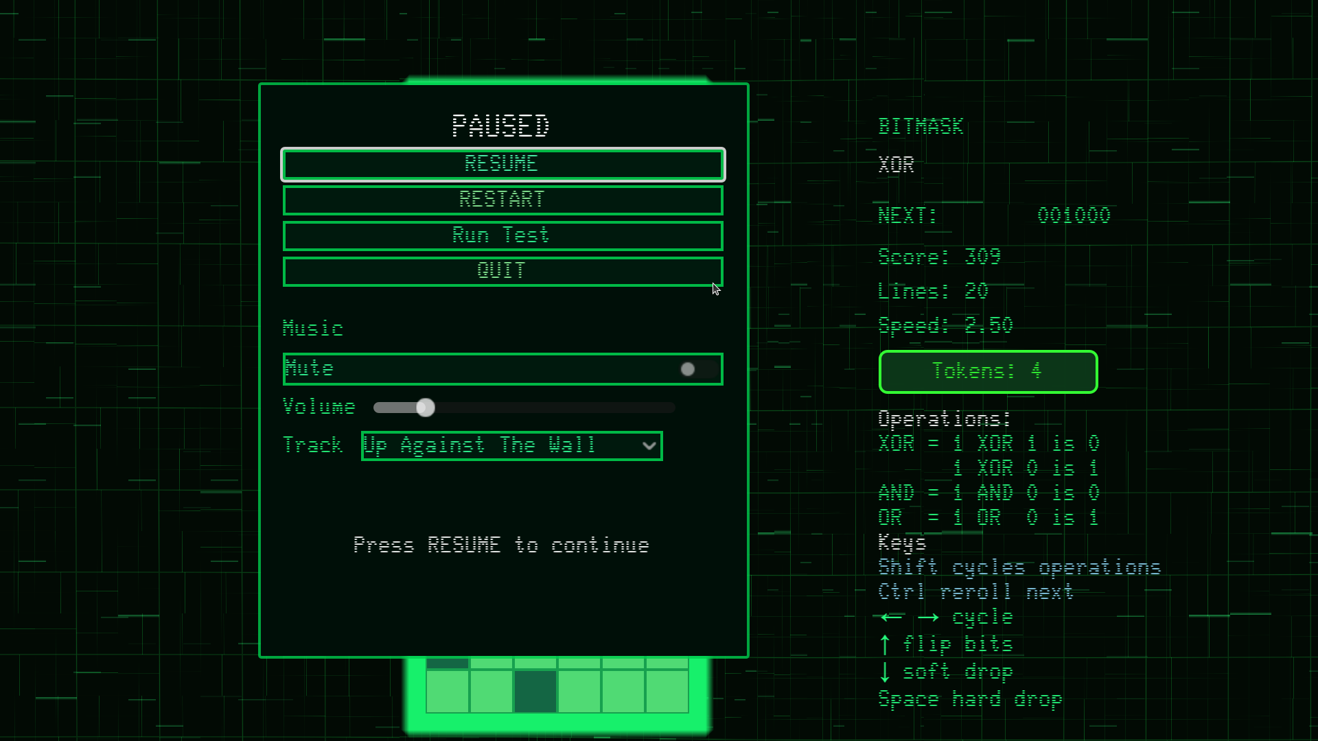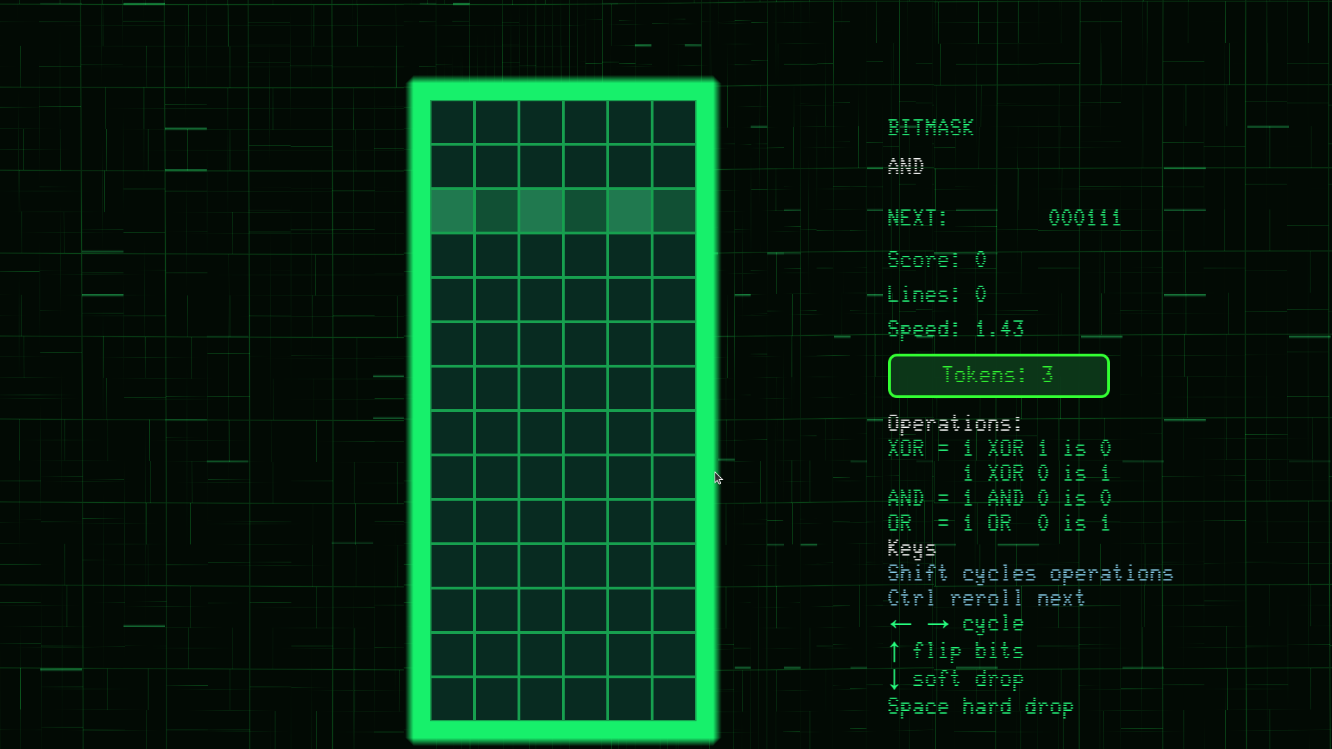 A downloadable bit rain puzzle for Windows, macOS, and Linux